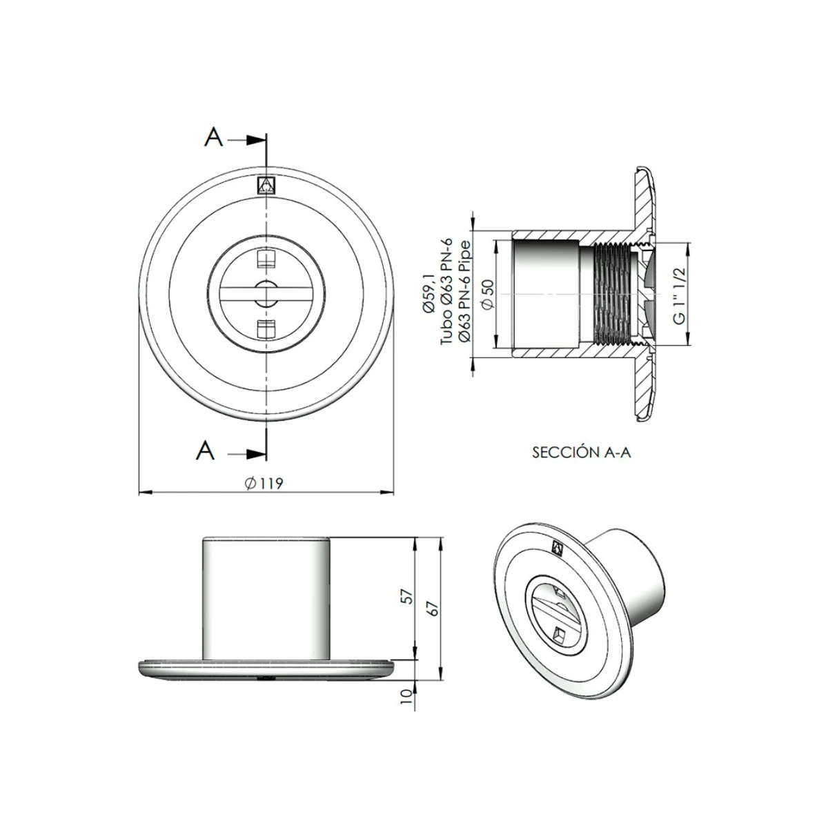 Buse d’aspiration de colle Ø63 et Ø50mm pour piscine béton