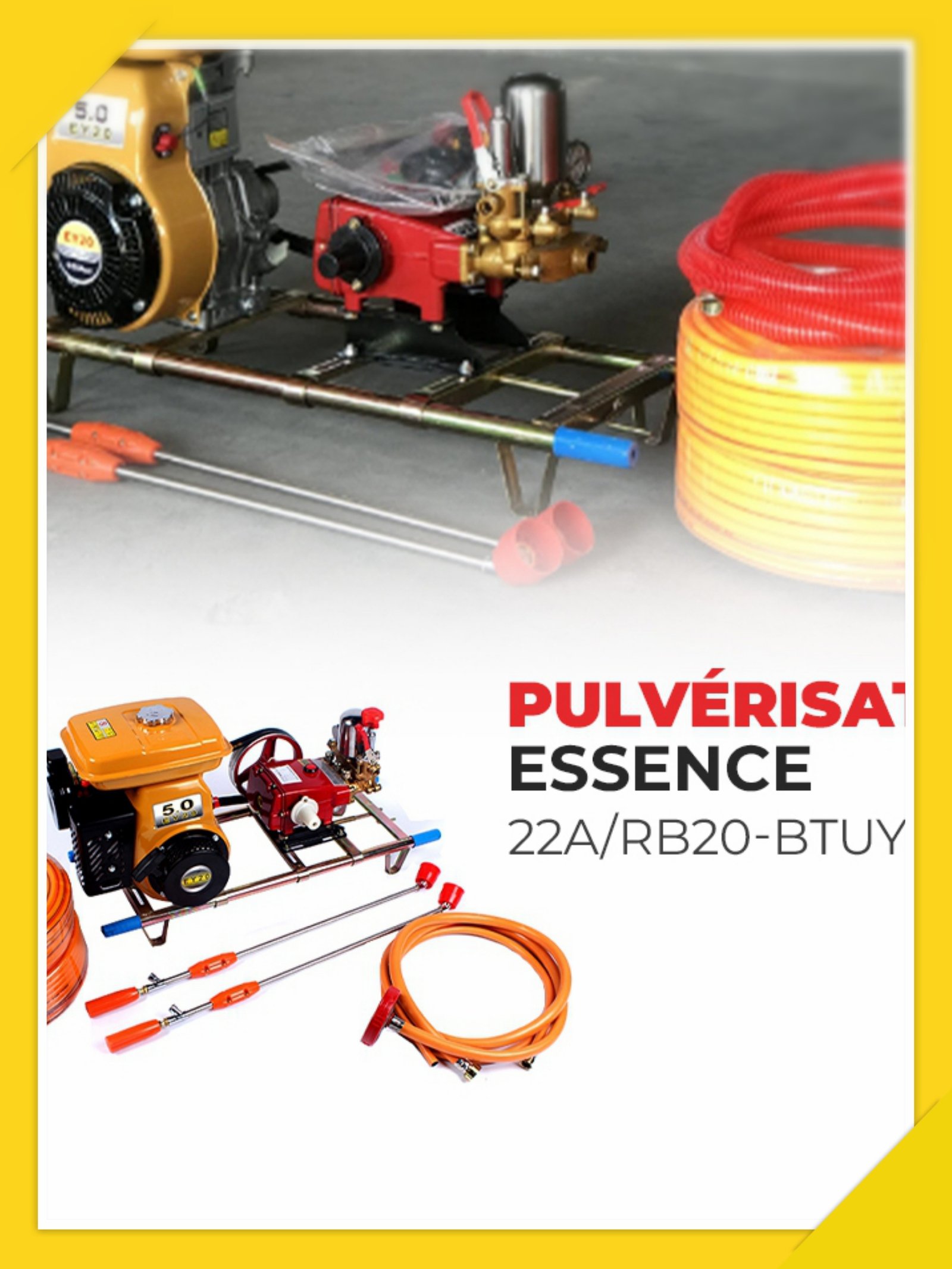 Et pour rendre l’opération assez légère, le Pulvérisateur essence 22A / RB20-B TUY 2X50 est doté de l’option d’aspiration de 13 à 22 Litres par minute..Vous pouvez donc finaliser le processus en juste quelques minutes.